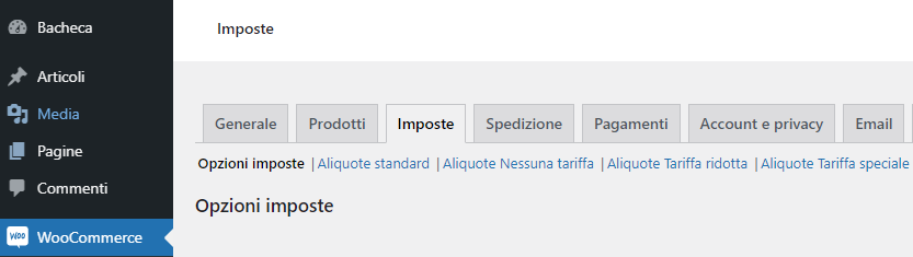 Come abbiamo avuto modo di osservare, le impostazioni di WooCommerce per le imposte consentono anche di gestire le